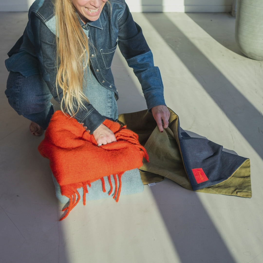 Our beds are made from upcycled army tents from the early 1900s - mega sturdy material that deserves a second life. They're washed before we work with them, but after decades of storage, some natural odor can linger. That's what you get with real, reused materials instead of factory-fresh plastic.