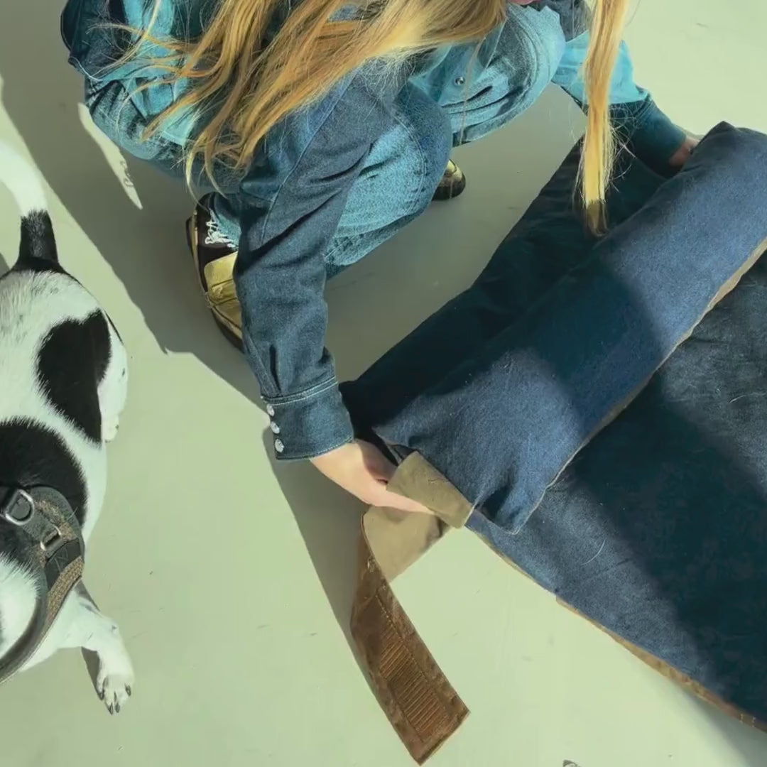 Denim: The top fabric of the bed is made from deadstock high-quality selvedge denim. For those who love a rough but stylish look, this denim originates from Japan and was purchased from a deadstock dealer in the Netherlands, who had a limited supply.